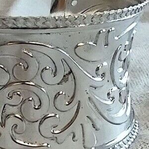 Silvertone Metal Floral Wide Concave Cuff Bracelet 7.5"