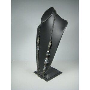 Silvertone Multi Strand Chain Necklace Clear Lucite Beads Mesh Spheres 33 inch