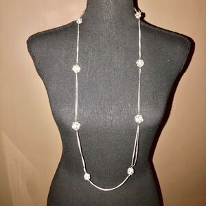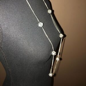 Silver-tone with Faux Rhinestone, adjustable to wear long or double short