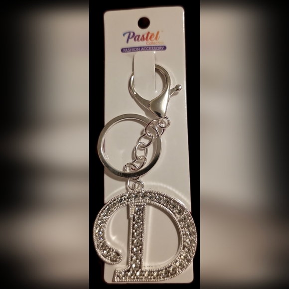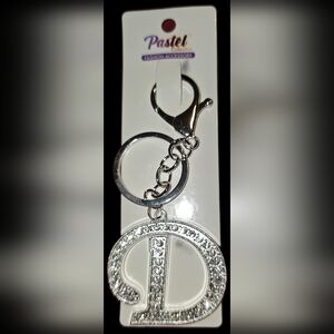 Silvertone Rhinestone Initial "D" Keychain