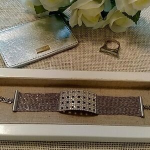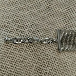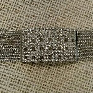 Rhinestone Bracelet wraps the wrist with delicate silver chains. Will fit 7/8 inch wrist. Lobster clasp.