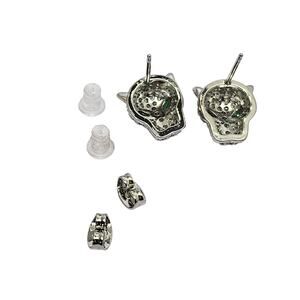Silvertone Round Pave` Crystal Green Marquise Eyes Panther Cat Stud Earrings