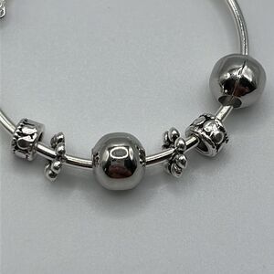 Silver-tone Shiny 6 Beads 2” Hoop Earrings