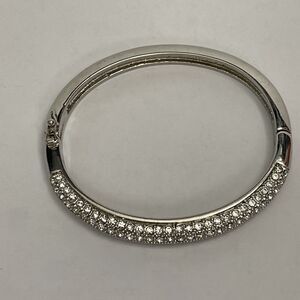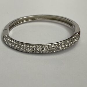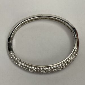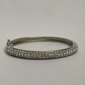Silver-tone Silver Clear Rhinestones Pave Fashion Bangle Bracelet