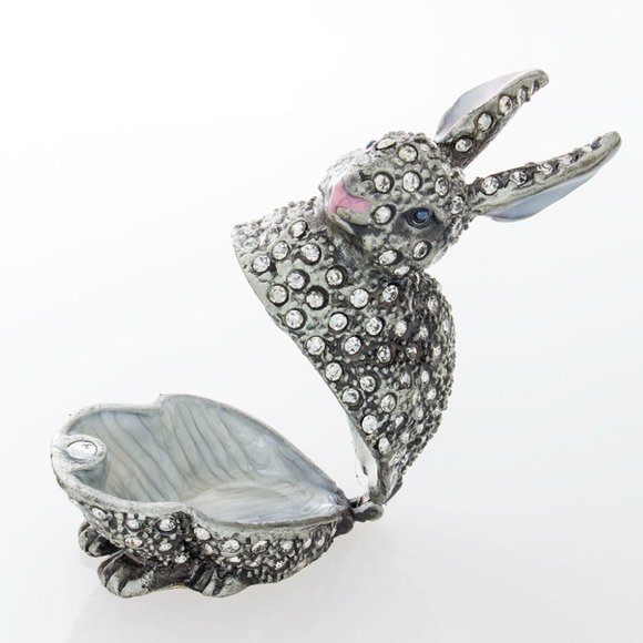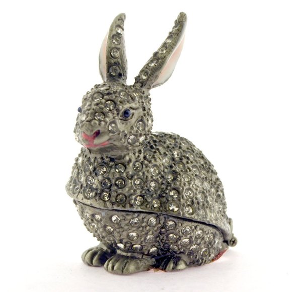 Silver-tone Studded and Enameled Bunny Rabbit Trinket Box, Year of the Rabbit