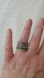 Silvertone size 7 wide ring of skulls features a unique textured design with intricate detailing. Excellent used condition.