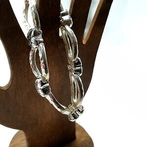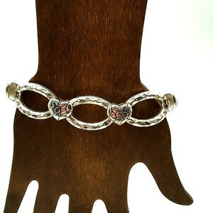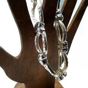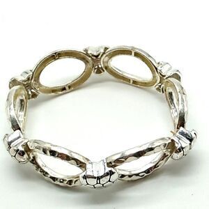 Silver-tone Textured Heart Open Oval Stretch Bracelet