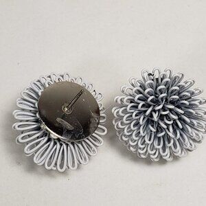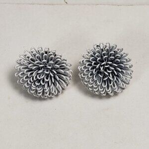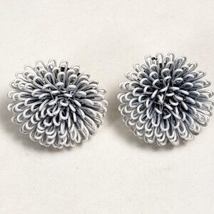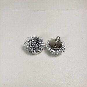 These stylish silver-tone stud earrings feature a white and grayish pine cone-inspired design with intricate looped texture, giving them a bold and modern edge. The 3D floral-pom style makes them perfect for dressing up a casual outfit or adding flair to your formal look. They are lightweight and eye-catching—a unique twist on classic stud earrings! NWOT