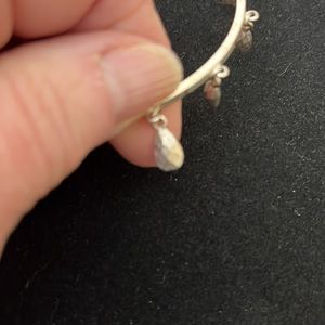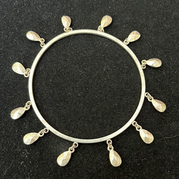Silvertone bangle, with teardrop shaped dangles. Hammered looking silver, not shiny. Could be Nine West.