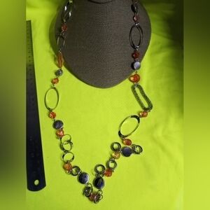 Silvertone chain beaded pinkish peach 🍑 color necklace
