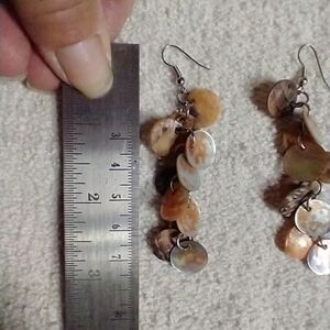 Silvertone chain wire dangle discs orange 🧡 earrings