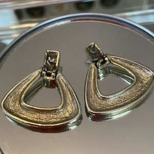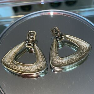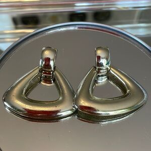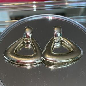Silver tone drop open triangle post earrings Good used condition just missing earring backs 1 1/2” long
