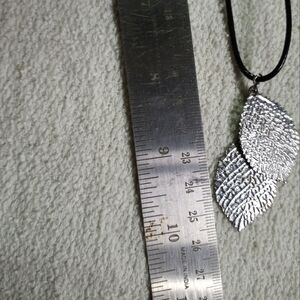 Silvertone leaves leaf 🍃 Necklace on black cord