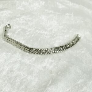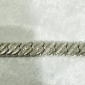 Silvertone rhinestone double clasp 7" bracelet 1.1478