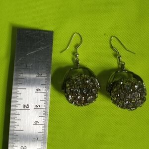 Silvertone rhinestone leaf 🍃 wire rotating rhinestone earrings