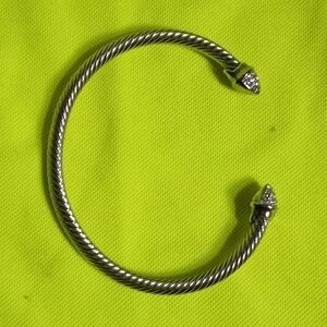 Silvertone twisted wire cuff bracelet Crystal adjustable