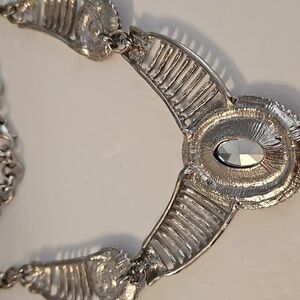 Silvertone with Large & Small Rhinestones on 18" Long Necklace. This was an estate find, so I have no idea of age. It is lovely & in great condition.