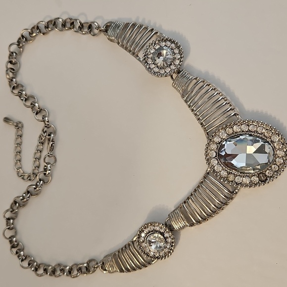 Silvertone with Large & Small Rhinestones on 18" Long Necklace