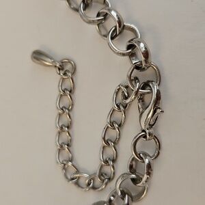 Silvertone with Large & Small Rhinestones on 18" Long Necklace. This was an estate find, so I have no idea of age. It is lovely & in great condition.