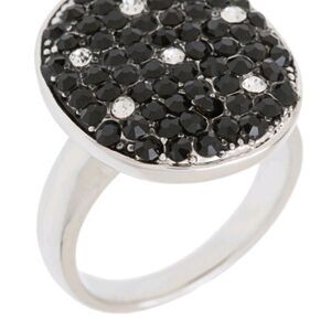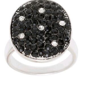 This stunning black and silver ring adds a touch of elegance to any outfit. Perfect for any occasion.