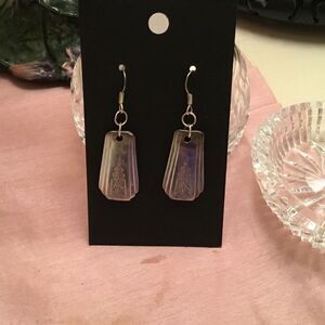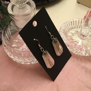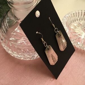 Unusual silvertone dangle earrings feature engraving and have silvertone fishhook backs. silvertone. These measure 1/2” at widest point and have a drop of 1 1/2”. Back side is plain with no engraving. $8 each or bundle 3 of same price for $15 and save.