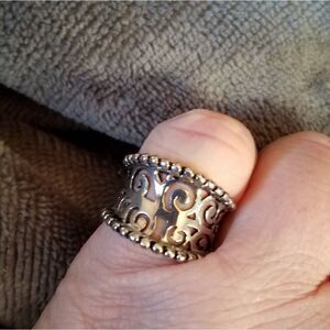Silvertone Openwork Concave ring. Size 7 Metal Purity is Brass Metal Color is White