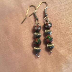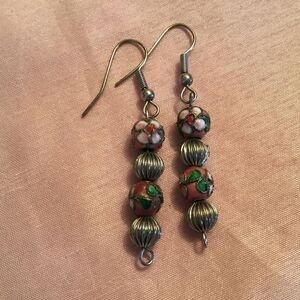 Silvertone and Cloisonne Earrings