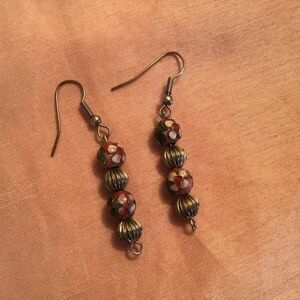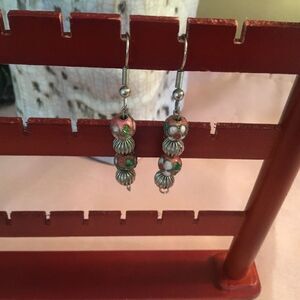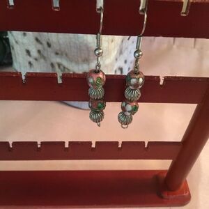 These silvertone ear wires hold alternating silvertone beads and pink cloisonné beads. they have an overall drop of 2” from the ear wire. Very gently used as photos show. Front and back sides shown (they just look the same)