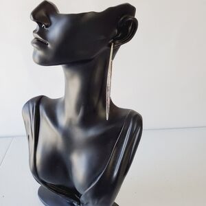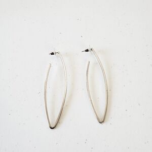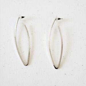 Silver-toned Geometric Oval Oblong Hoop Style Long Earrings
