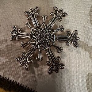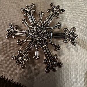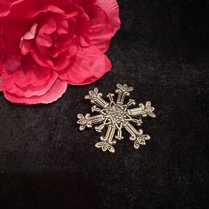 Gorgeous Silver-tone Snowfake Brooch Pendant with hints of Rose/Copper colors