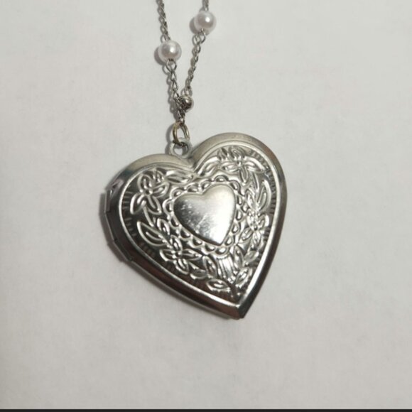 Beautiful silver-toned heart locket charm for a necklace (chain is not included)