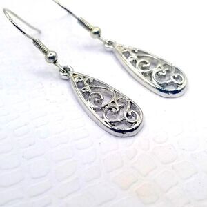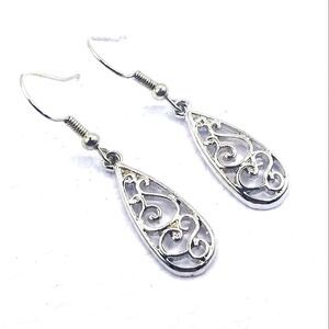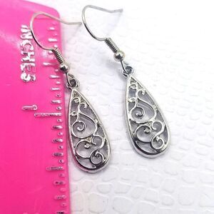 Silver toned hook Teardrop Dangle earrings.