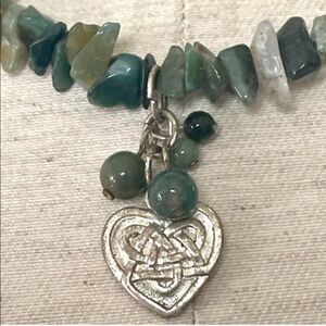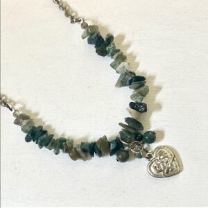 Silver tone heart pendant natural stones necklace