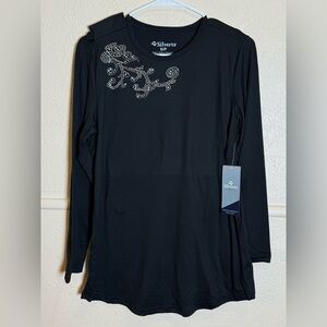 Silverts Black Embellished Long Sleeve Womens Top Assisted Dressing Small NWT