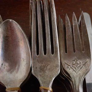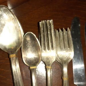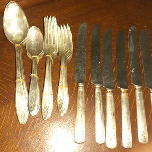 Lady Doris, Silver Plate, Silverware. Vintage. Five piece place settings, for 11. Knives have some rust. (see picture). Set of 12 spoons. 12 soup spoons. 12 dinner forks, 12 salad forks, and 11 knives. Great for the holidays! For some reason I have a lot of extra tablespoons, I will include. The price was adjusted for 2020, prices. Please ask any questions, before making an offer. I want people to be happy with their purchase.