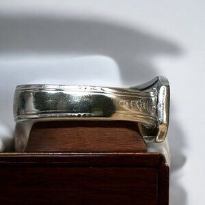 Once a dining table companion, this ring now graces your finger with tales of a bygone culinary era. Transformed from a Community Plate silver-plated spoon, it embodies the beauty and elegance of vintage craftsmanship. Each floral detail whispers stories of shared meals and timeless artistry, now captured in a size 8.5 ring.