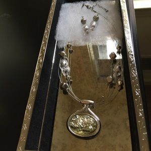 EUC Silvery Stones & Beads Necklace & Pierced Drop Earrings Set. Bundle with another item and receive the 15% closet discount.