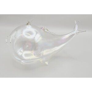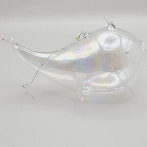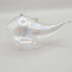 Silvestri Handcrafted Iridescent Blown Glass Whale Ornament with Flaw