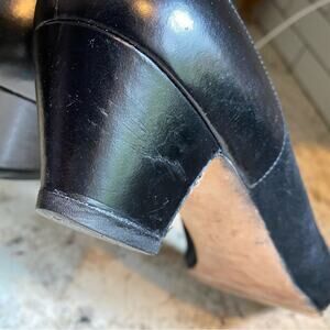 Black Suede Body with Black Leather Tips and Heel Detail.