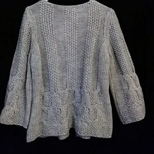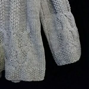 Very good used condition. Textured and cabled. 76% acrylic 12% alpaca 12% wool. 22 inches long measured from center back neck. Armhole to armhole is 22 inches. Sleeves are 14 1/2 inches long measured from underarm. 0419