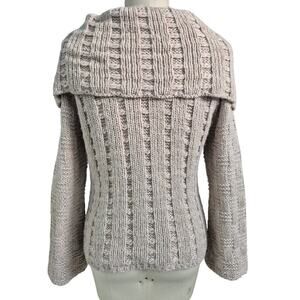 Silvia Novelli Sz L Tan Wool Blend Sweater Cable knit Oversized High Cowl Collar