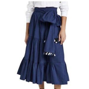 Silvia Tcherassi Michaela Skirt Tiered Wrap Cotton Midi Skirt Tassel Size M