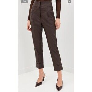 Silvia Tcherassi Women's Brown Moad Faux Leather Pants Size Med Tailored Barrel