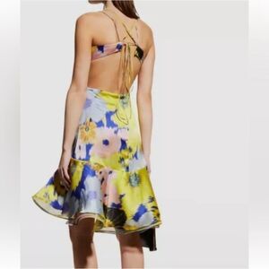 Retails for $1150. Silvia Tcherassi "Analissa" silk bustier dress with abstract floral print and waist cutouts Sweetheart neckline Sleeveless Self-tie strappy, open back Fit-and-flare silhouette Knee-length Invisible back zip Silk/elastane Polyester/recycled polyester, lining Imported