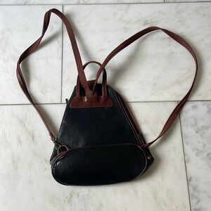 Silvia convertible black leather mini backpack or sling bag w/two outer pockets