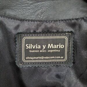 Silvia y Mario Womens Black Leather Jacket Lined Pockets Full Zip Argentina Sz M
