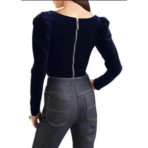 Silvia Tcherassi Woman Madison Cropped Velvet Top Navy Large