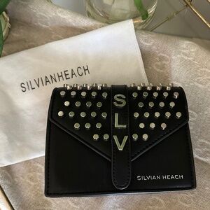 Pleather shoulder bag, with decorative studs, front Silvian Heach logo, chain shoulder strap and flap closure.