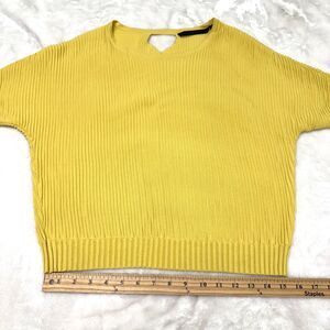 Silvian Heach Women's Yellow Ribbed Knit Short Sleeve Oversized Sweater Top Sz M