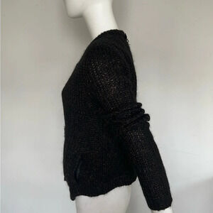 Silvian heach M Metallic Black Wool blend Zipped Cardigan Anthropologie